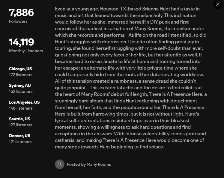 Not a ton of monthly listeners. If you listen to this song, you’re pretty hip. 🙂
